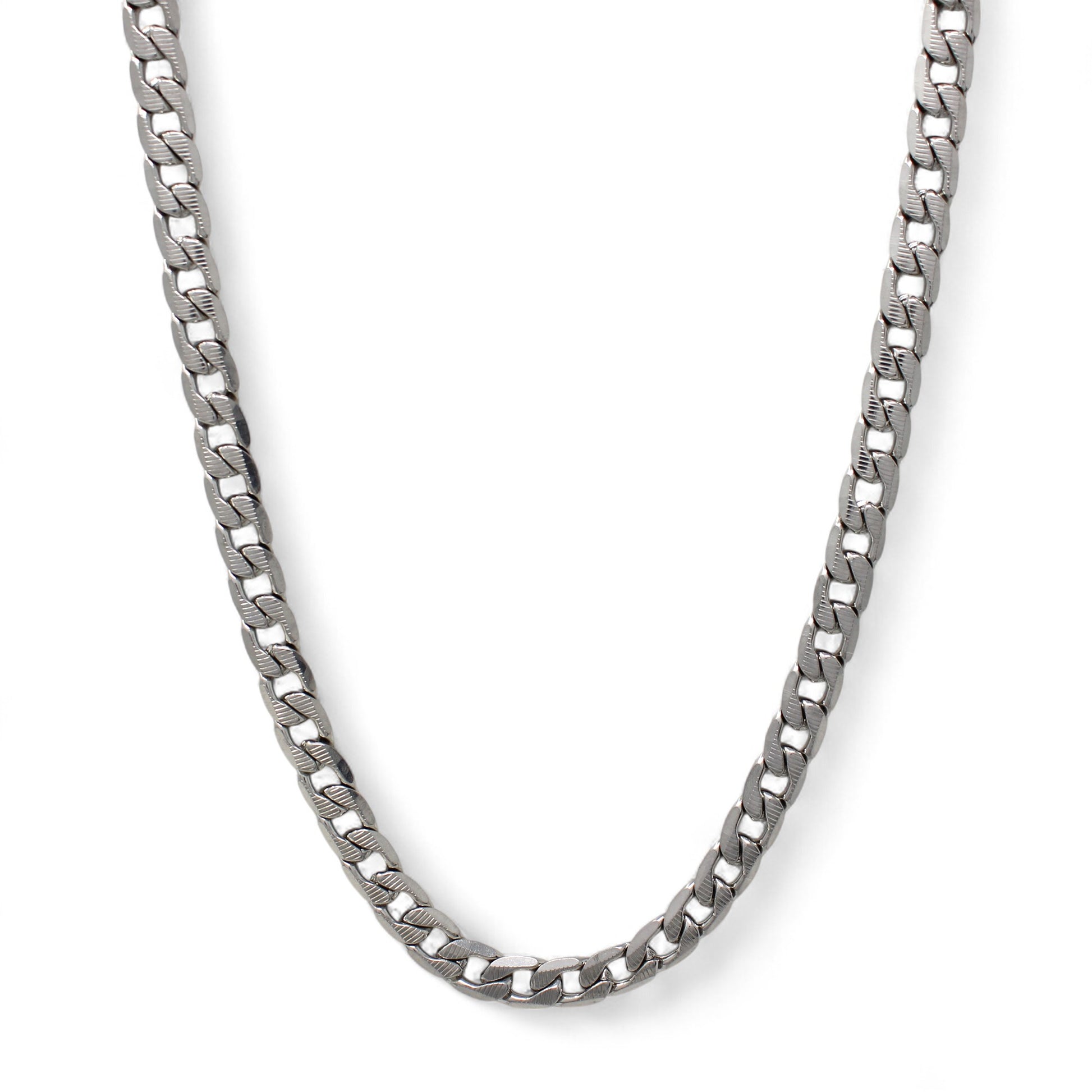 Add a refined edge to your jewellery collection with this Textured Cuban Curb Chain Necklace. Crafted from high-grade stainless steel and finished with silver rhodium plating, this chain features a unique textured surface on each link, adding dimension and a distinct masculine flair.