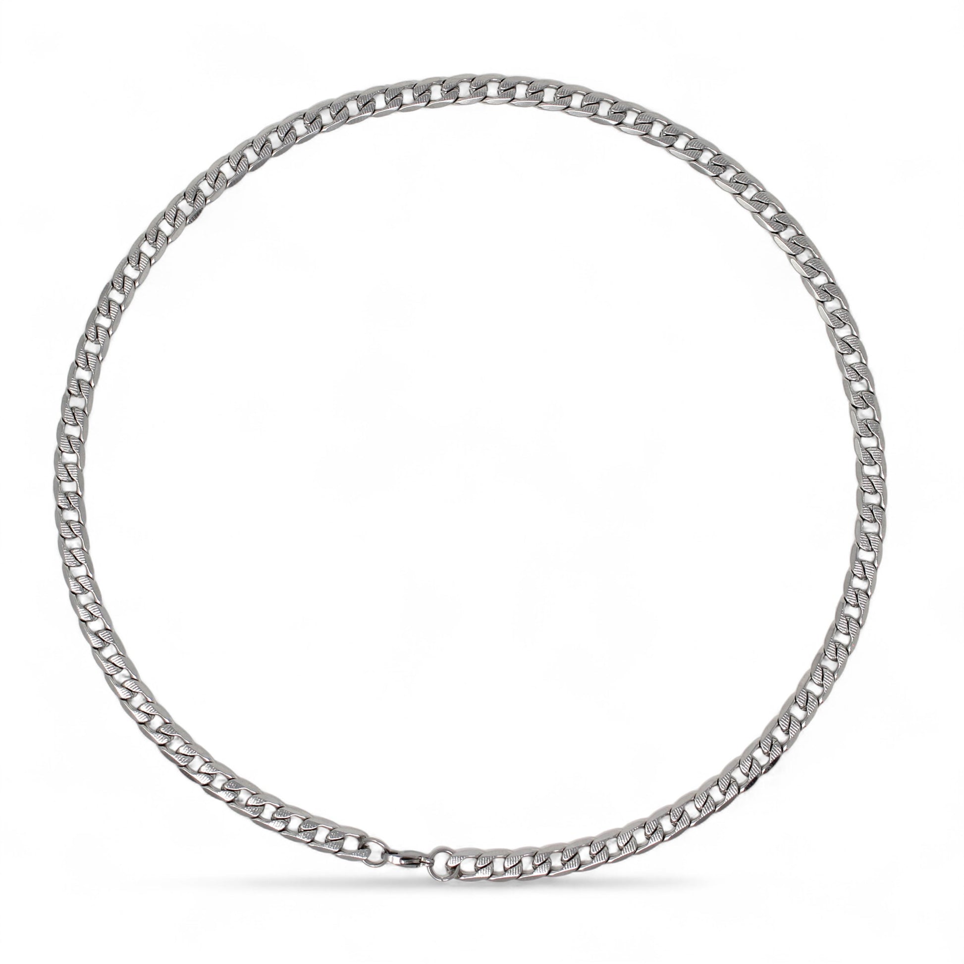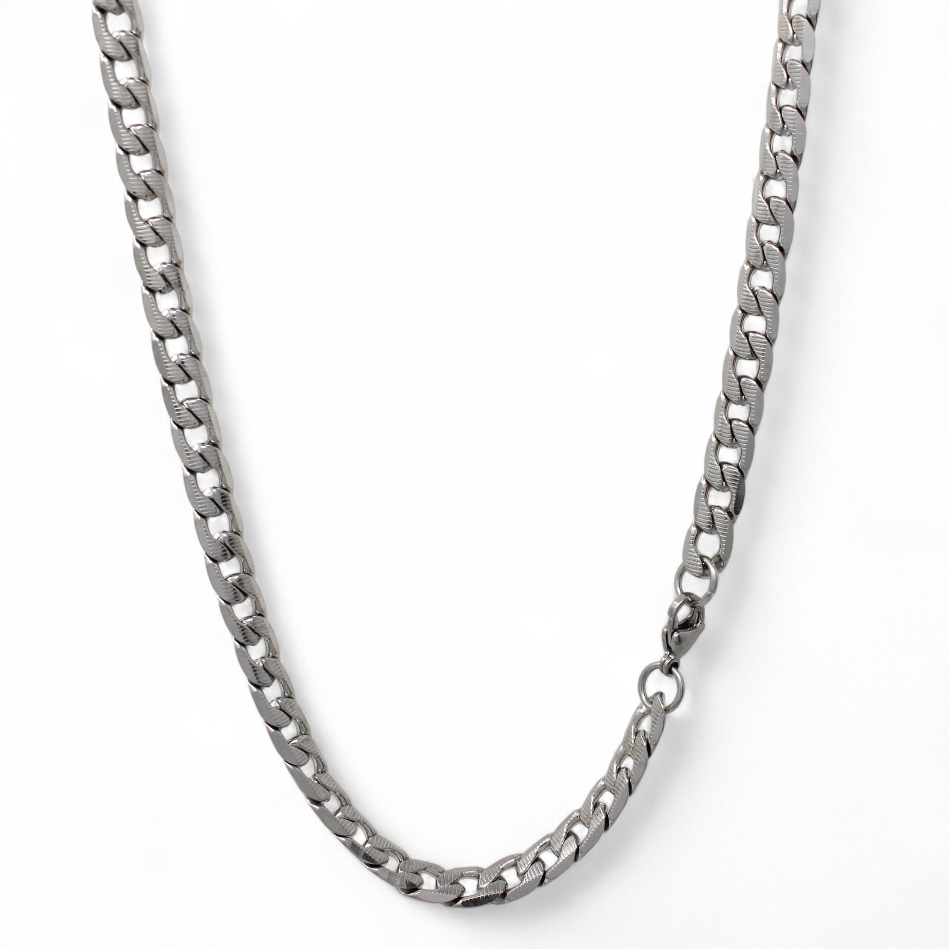 Textured Cuban Curb Chain Necklace – Silver Rhodium Plated Stainless Steel