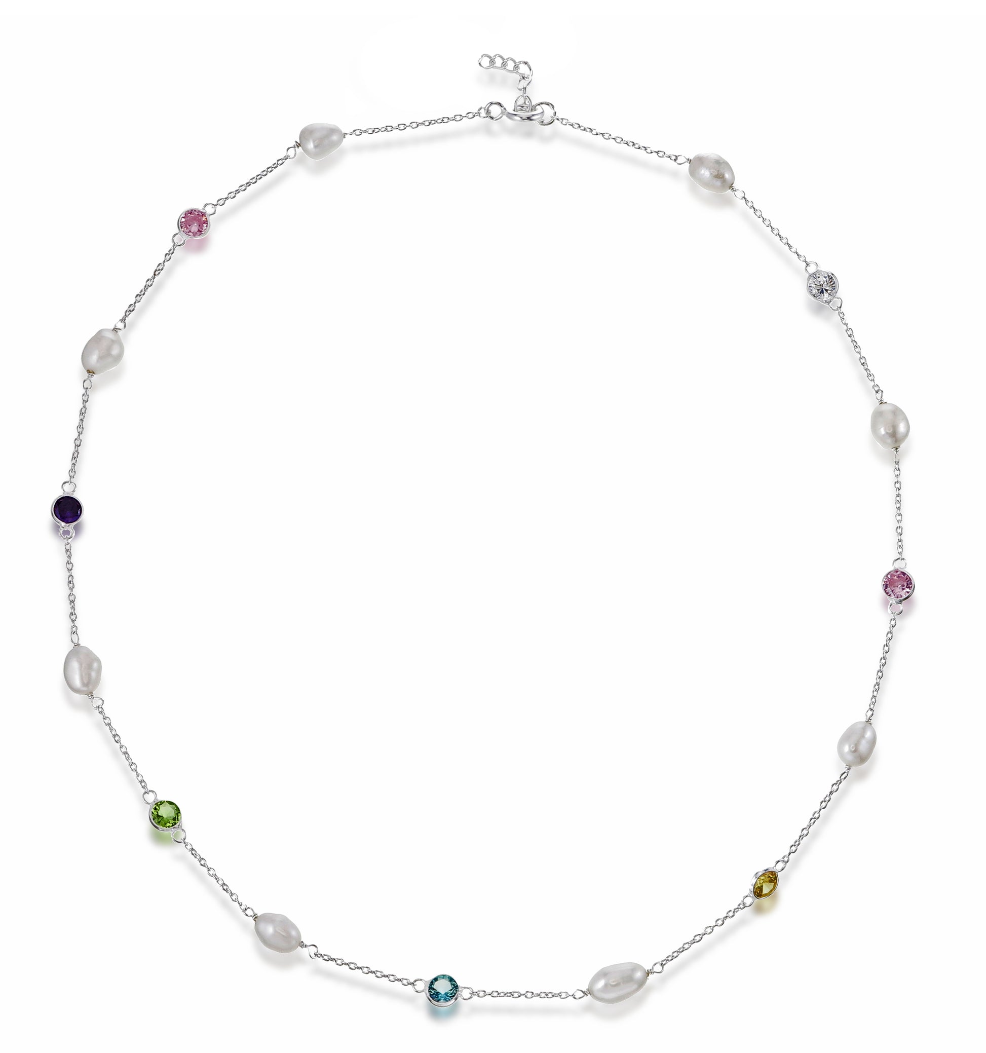 Pearls by the Rainbow - Sterling Silver Freshwater Pearl & Multicolor CZ Gemstone Necklace