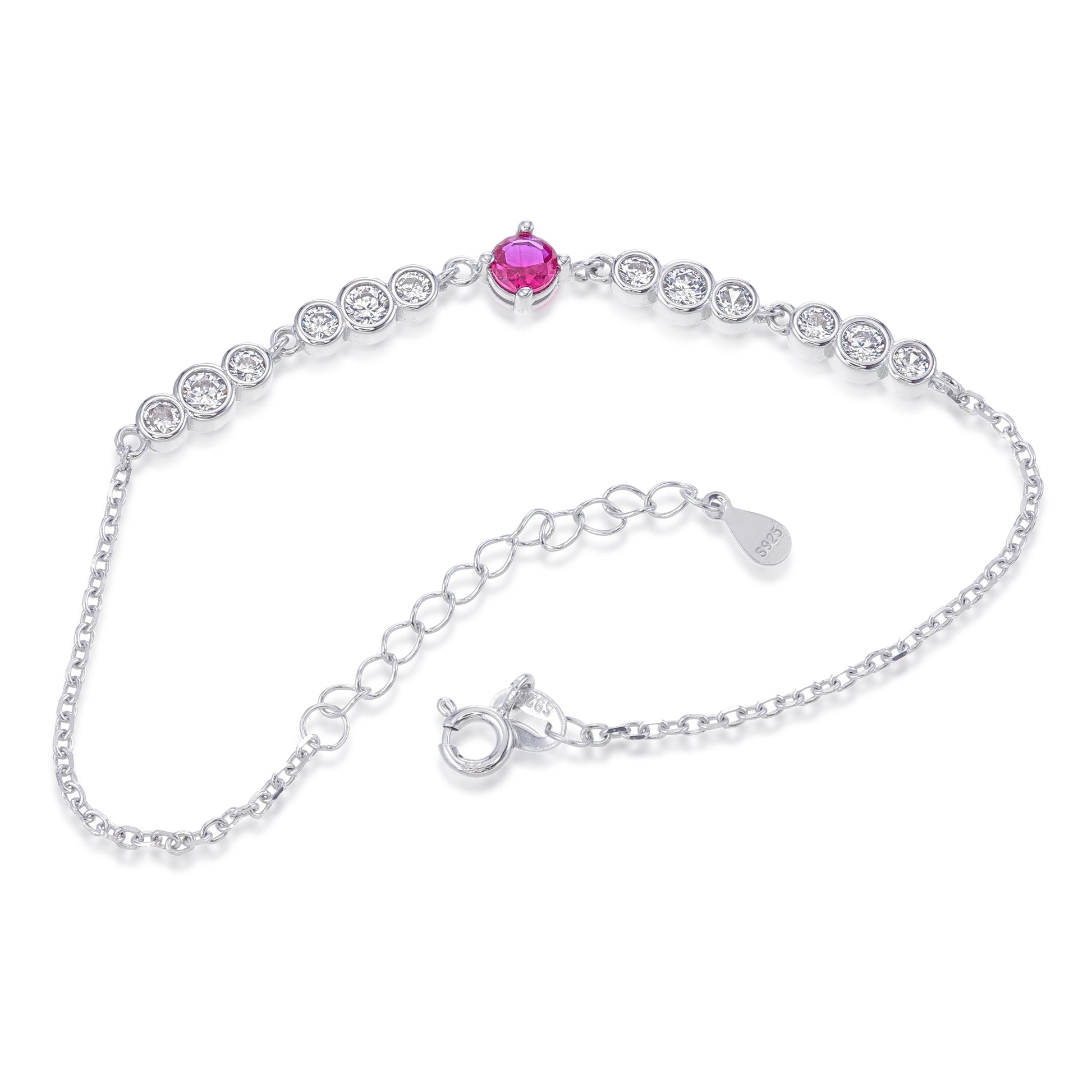 Soft, graceful, and endlessly charming — the Radiant Soul Bracelet captures warmth and femininity with a vibrant pink topaz CZ gemstone at its center, surrounded by a row of sparkling white cubic zirconias.