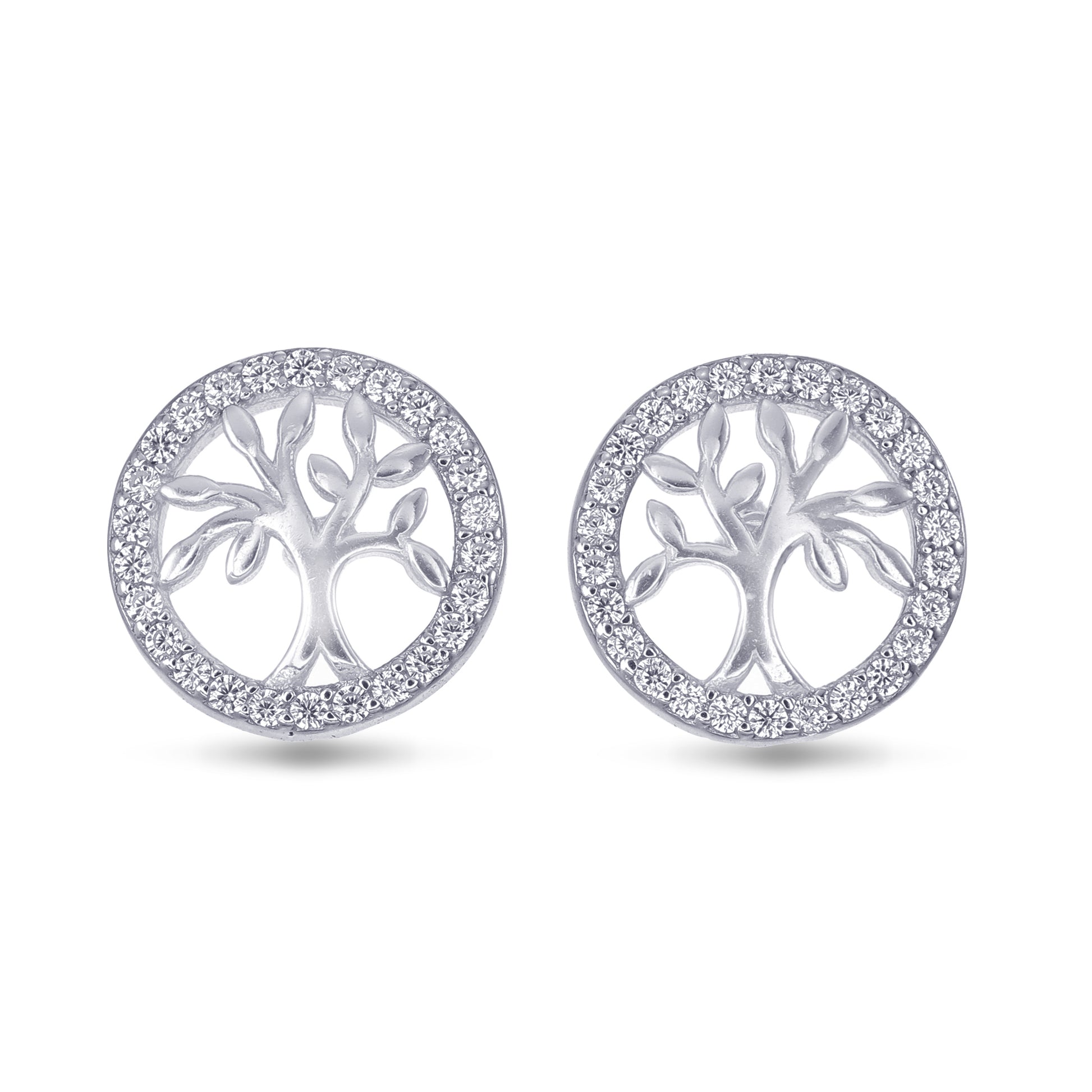 Crafted in 925 sterling silver, each circular stud features a delicately sculpted tree of life, framed by a halo of shimmering cubic zirconia. The roots symbolize ancestry, strength, and belonging, while the branches reach outward — a reminder of growth, resilience, and endless possibility.