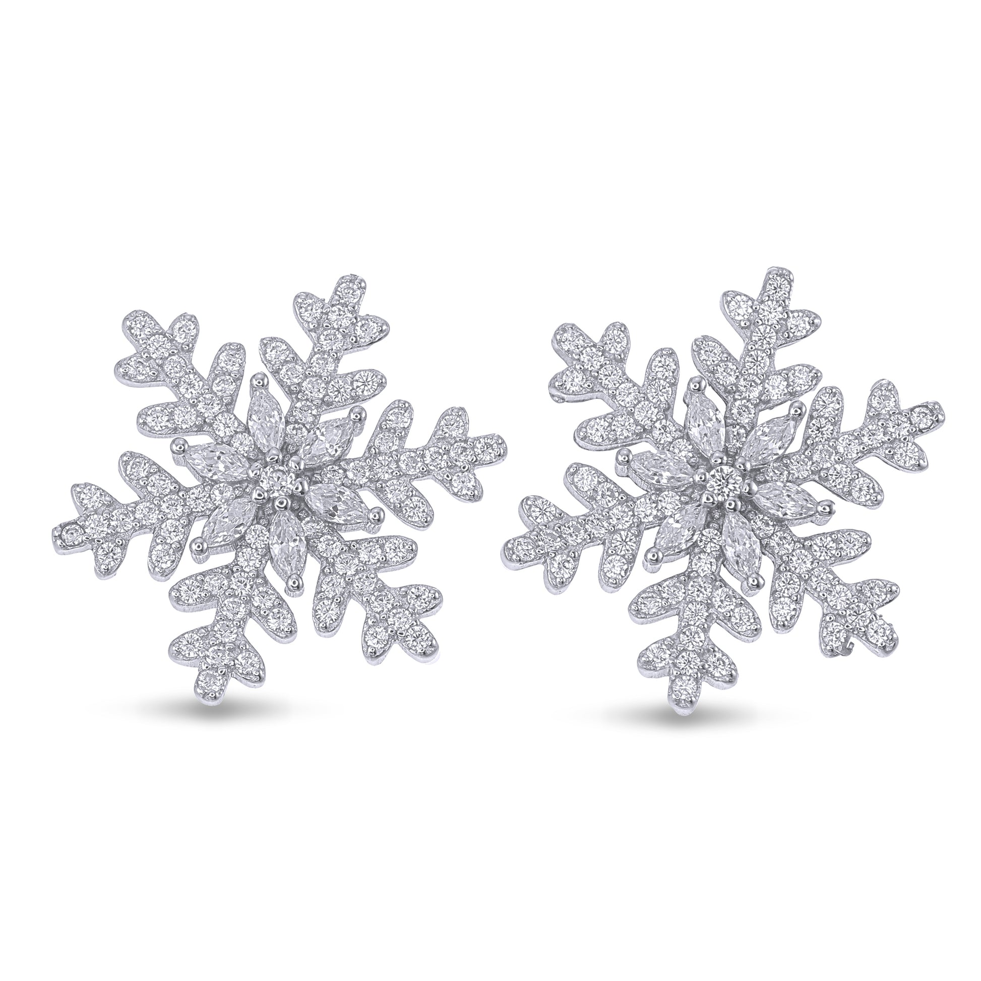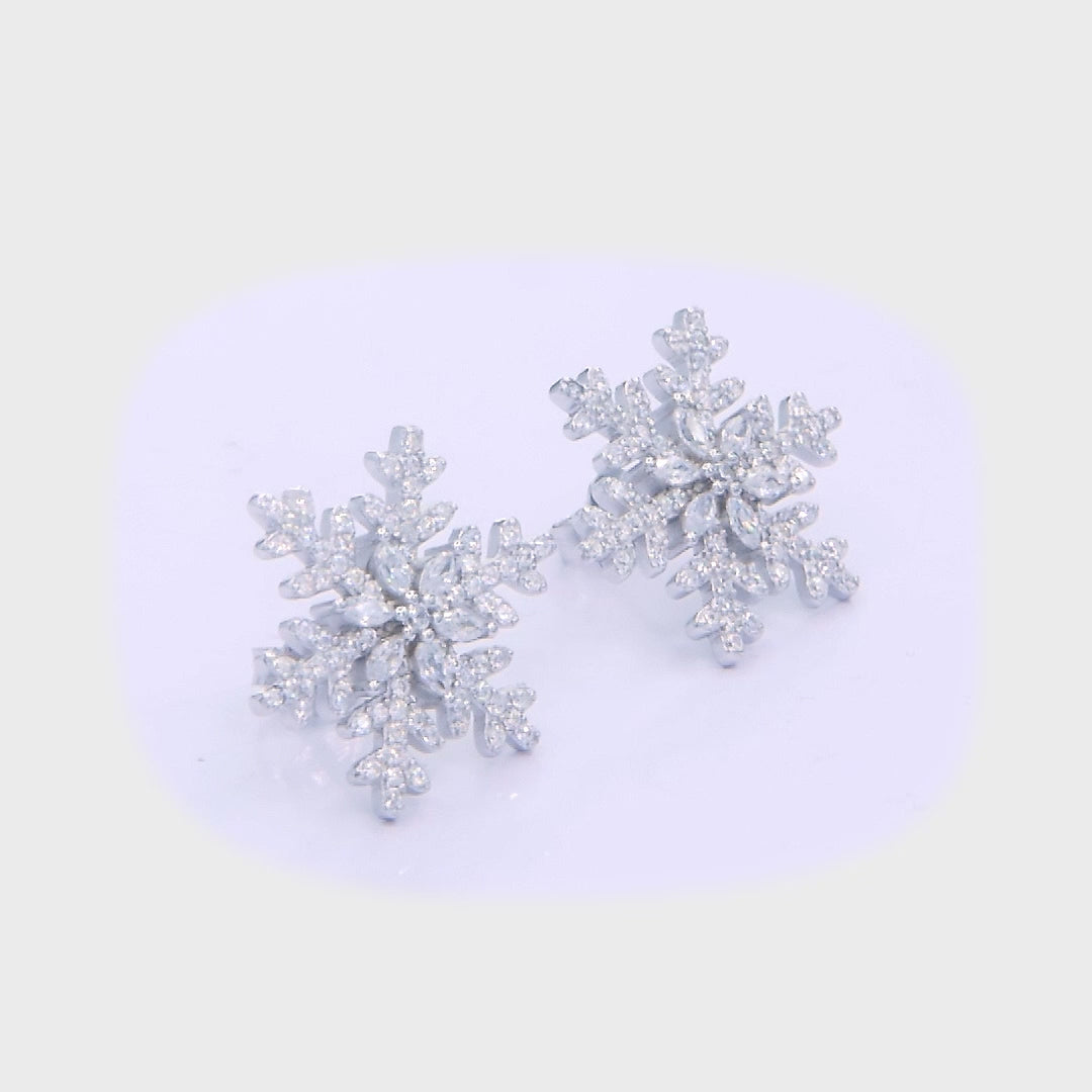 Snowflake Winter Magic Statement Ear studs - 925 Sterling Silver CZ Earrings