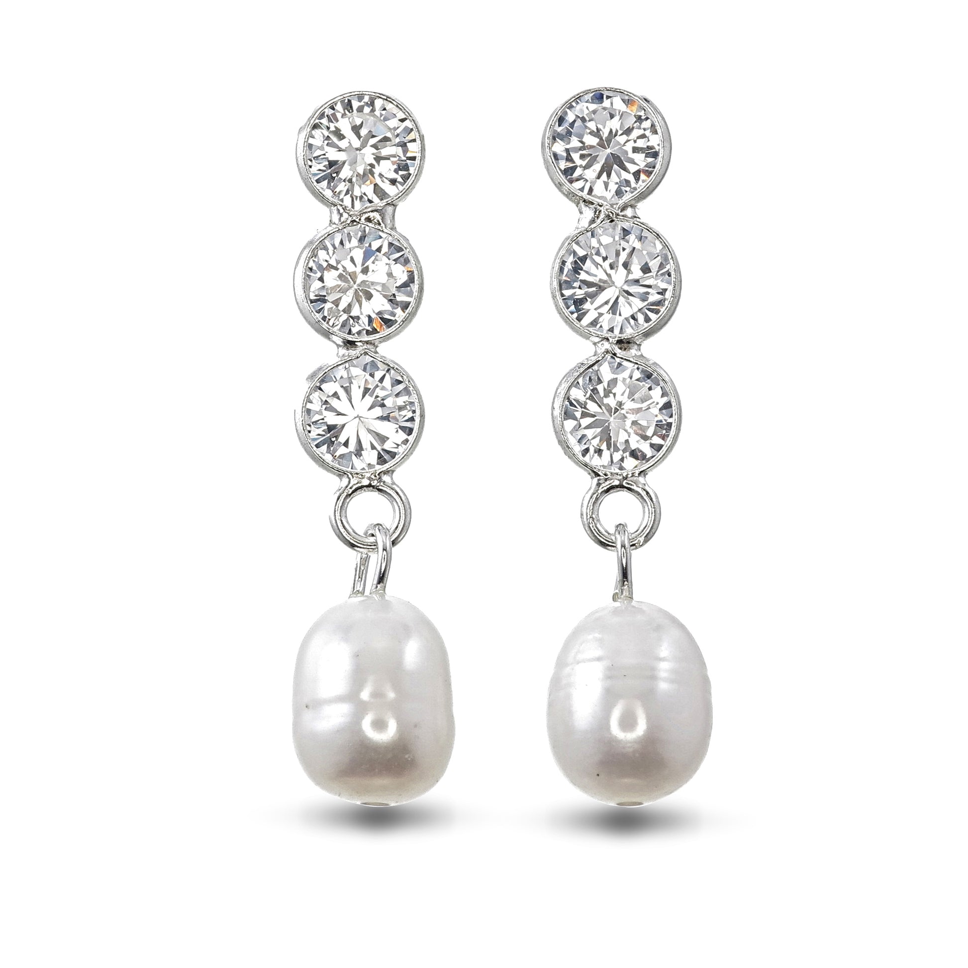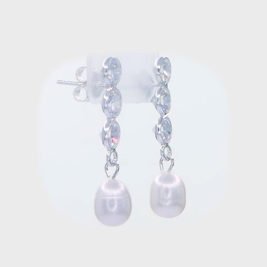 Trinity of Light Pearl Drop Earrings - 925 Sterling Silver CZ Earrings