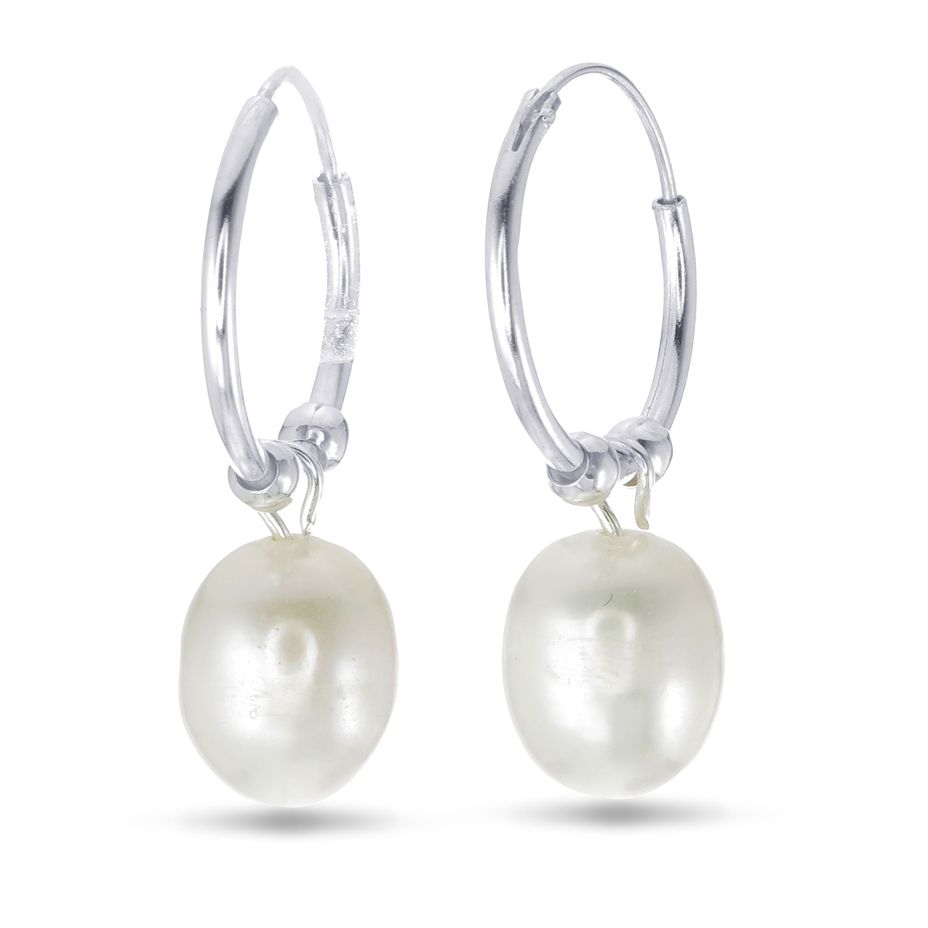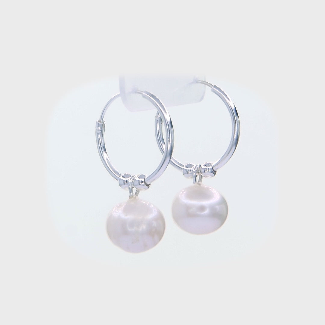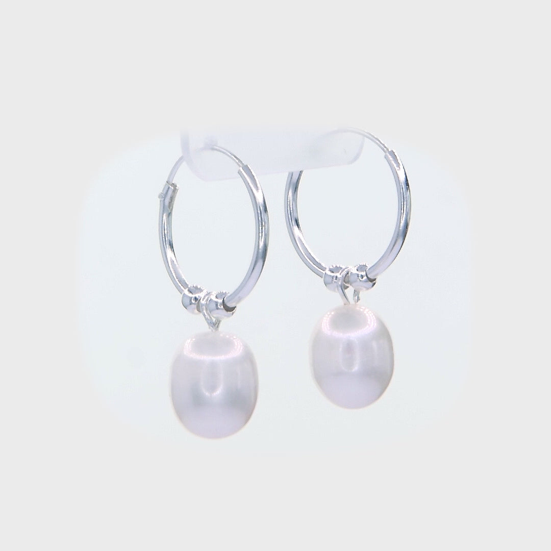Whispers of Pearl Hoops - 925 Sterling Silver Freshwater Pearl Drop Hoop Earrings